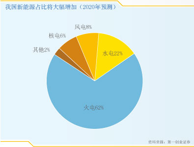根據(jù)聯(lián)合國環(huán)境規(guī)劃署的測(cè)算,我國要實(shí)現(xiàn)2020年二氧化碳減排目標(biāo),僅在節(jié)能和新能源領(lǐng)域的直接投資就需要10萬億元以上。其中,隨著《新興能源產(chǎn)業(yè)發(fā)展規(guī)劃》出臺(tái),未來10年我國將直接增加新能源投資5萬億元,每年增加產(chǎn)值1.5萬億元。