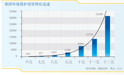 據(jù)預(yù)測(cè),我國“十二五”期間環(huán)保投資規(guī)模將達(dá)到3.1萬億元人民幣,與“十一五”相比,增幅達(dá)125%,年均增速約為16%。到2015年,環(huán)保投資規(guī)模將達(dá)到GDP的7%-8%。“十二五”期間,環(huán)境產(chǎn)業(yè)產(chǎn)值規(guī)模也將保持15-20%的年均增長率,預(yù)計(jì)到2015年將達(dá)到2萬億元,中國將成為世界最大的環(huán)保產(chǎn)業(yè)市場(chǎng)之一。