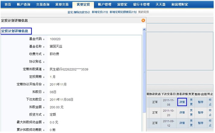 點擊“詳情”,查看您已經設立的定投計劃詳情。