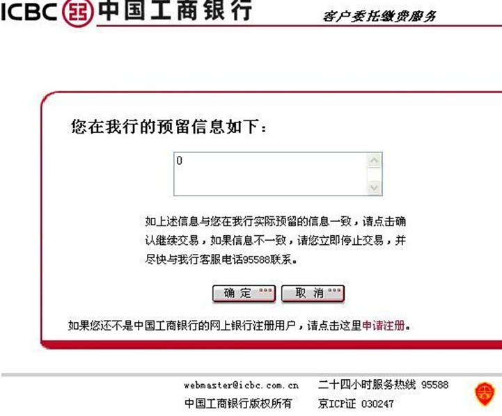 4、核對您在工行的預留信息。