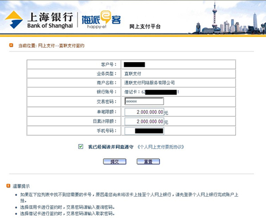 1、請先持個人有效身份證件到上海銀行營業網點申請上海銀行借記卡并開通網銀;