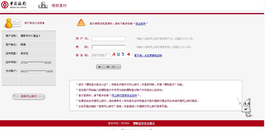 2、根據提示,在中行網銀頁面輸入用戶名、密碼和驗證碼;