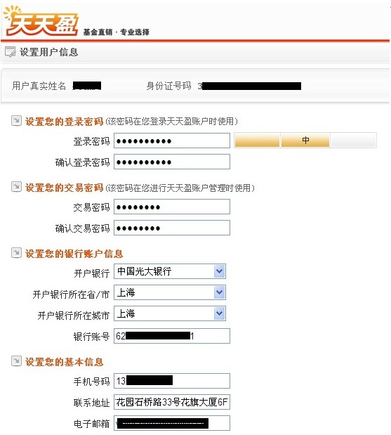 2、 根據提示,在天天盈的頁面錄入相關信息